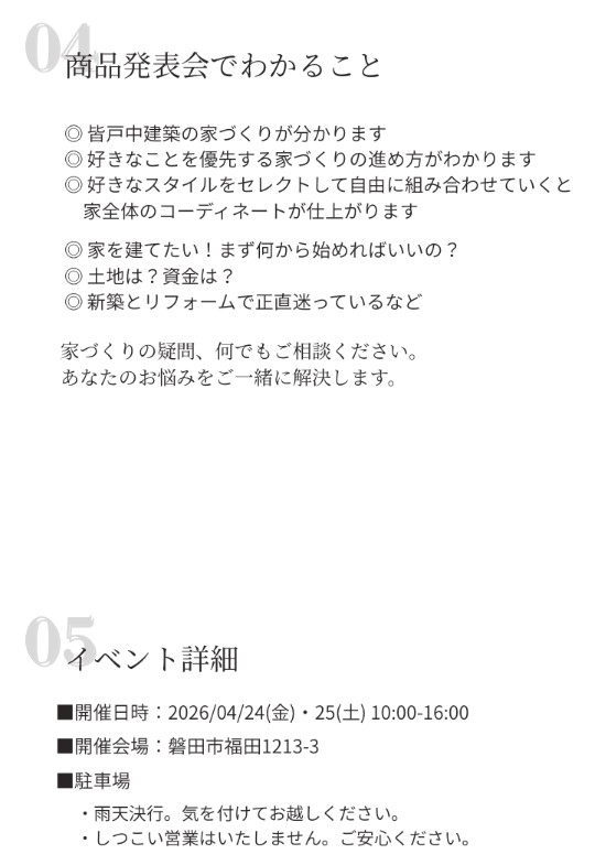 【新築】新商品発表会 ・平屋モデルハウスオープン 同時開催!