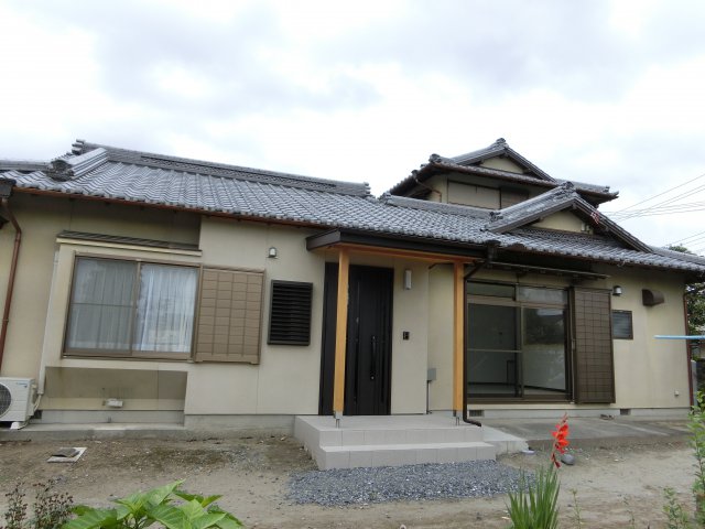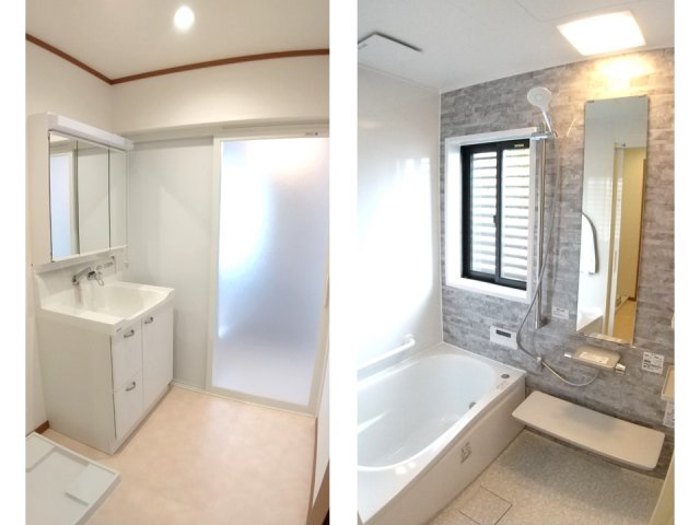 既存の和室を解体し、一部は子世帯用の玄関・LDKへ、一部は親世帯の浴室・洗面脱衣室へ間取り変更させていただきました。