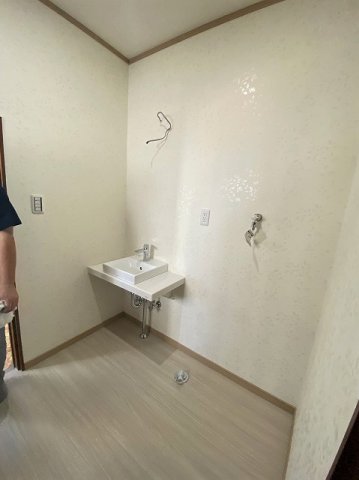 既存の洗濯機が置かれていたスペースは納戸へ、そして新たな洗濯機置場として既存の湯沸かし室をリフォームさせて頂き、洗面台も設置させて頂きました。