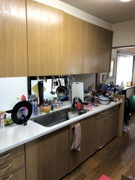 また、キッチンについては壁・天井のクロス貼替や食器棚の撤去等もさせて頂きました。