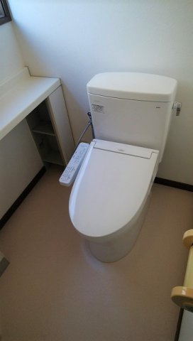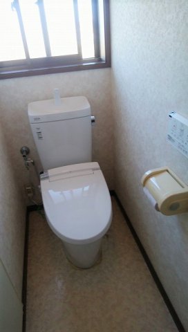 皆戸中建築の担当アドバイザー鈴木大作が工事を担当させて頂き、1階トイレは「TOTO ピュアレストQR 手洗無」+「ウォシュレットSB」、2階は「LIXIL アメージュZ 手洗付」+「便座 CW-KA21」に交換させて頂きました。