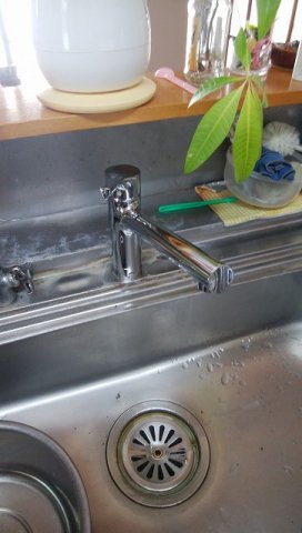 シンクとの一体感がある、スッキリとした水栓となりました。