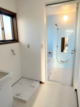 また同時に、洗面所の床・壁・天井の貼替え、洗濯パン交換もさせて頂きました。