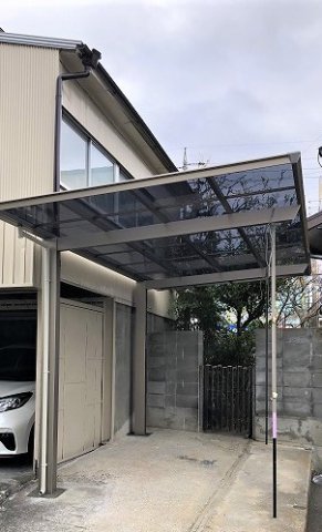 皆戸中建築の担当アドバイザー皆戸中が、住宅の屋根雨漏り工事・倉庫の外壁塗装工事・倉庫の庇撤去、カーポート設置工事等をさせて頂きました。