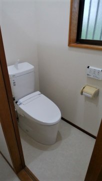 皆戸中建築の担当アドバイザー鈴木大作が工事を担当させて頂き、和式便器を洋式便器へ交換、また床・壁・天井の貼替え工事もさせて頂きました。