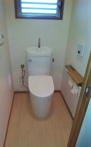 皆戸中建築の担当アドバイザー皆戸中が工事を担当させて頂き、トイレをTOTOの手洗付きの商品へ交換させて頂きました。
