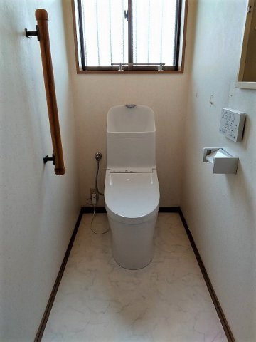 皆戸中建築の担当アドバイザー鈴木克彦が工事を担当させて頂き、1Fのトイレを「TOTO ZR 手洗付」に、2Fのトイレを「TOTO ピュアレストQR」に交換させて頂きました。