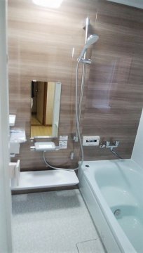 タイルのお風呂からユニットバスへリフォームさせて頂き、お掃除も楽になり、冬は寒さも軽減されるかと思います。