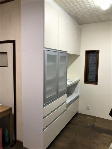 皆戸中建築の担当アドバイザー皆戸中が工事を担当させて頂き、システムキッチンと収納棚のリフォーム工事をさせて頂きました。