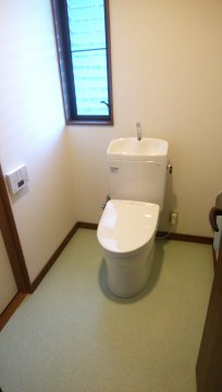 皆戸中建築の担当アドバイザー鈴木大作が「TOTO ピュアレストQR+アプリコット」に交換工事をさせて頂き、同時に床壁天井の張替え工事もさせて頂きました。