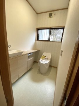 広々とした手洗いカウンターのある、ゆったりとしたトイレ空間となりました。