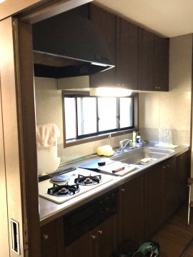 キッチンは「リクシル ノクト食洗機付き」天井・壁貼り替えさせていただきました。