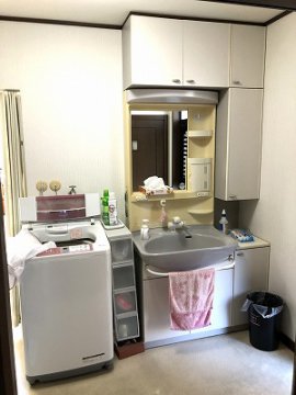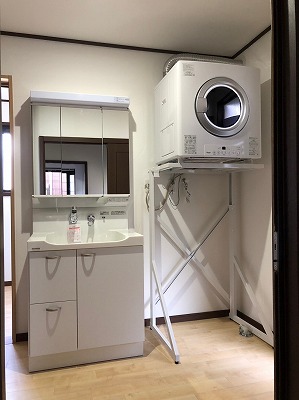 洗面台はトクラスEJ、床・壁貼り替え、衣類乾燥機8㎏ 幹太くんを設置させていただきました。