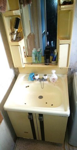 浜松市浜北区にお住まいのT様は、洗面台止水栓からの水漏れで洗面台交換を、また同時に洗面所床の張替え、洗面所ドアの交換をご希望でした。