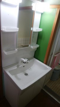 浜松市浜北区のS様は、洗面台のボウルが割れ、水栓から水漏れしているとのことで洗面台交換をご希望でした。