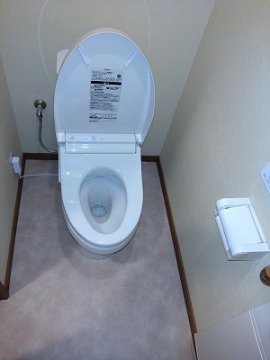 皆戸中建築のアドバイザー鈴木大作が工事を担当させていただき、便器は「TOTO ZJ」天井・壁・床の貼替えをしました。