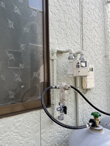 窓格子取り付けにあたりガス管の移設が必要となりました。