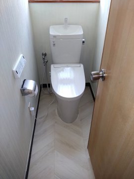 ヘリンボーン調の床がオシャレな明るいトイレとなりました。