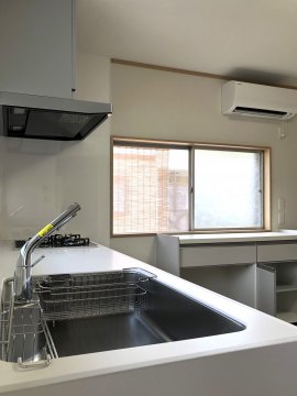 キッチンは床壁天井を含めてリフォームさせて頂き、エアコンも付けさせて頂きました。