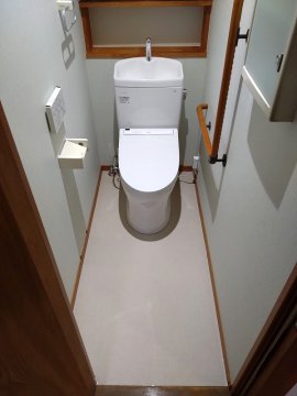 皆戸中建築のアドバイザー・皆戸中が担当させて頂き、便器を「TOTO ピュアレストQR 手洗付」のホワイトに交換させて頂きました。