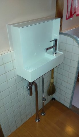 浜松市浜名区にお住まいのI様は、トイレ手洗器の交換をご希望でした。