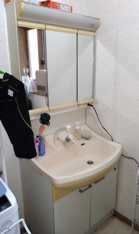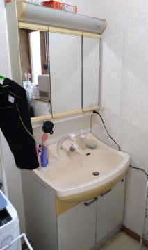 配管が古くなって水漏れがあるため、洗面台の使用を中止しているとのことでした。