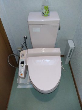 皆戸中建築のアドバイザー鈴木大作が担当させて頂き、便器を「TOTO ピュアレストQR」、便座を「アプリコットF1」に交換させて頂き、同時に床・壁・天井の貼替えもさせて頂いております。