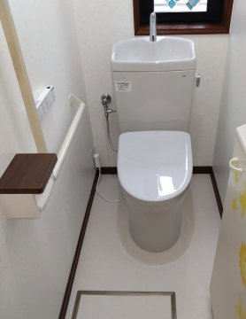 今回のリフォームにあたって、次回の故障時に費用を少なくするため、便器と便座が一体型ではない物が良いとのご依頼でした。