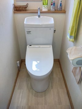 皆戸中建築のアドバイザー鈴木が担当し、便器は「TOTO ピュアレストQR 手洗あり」に交換し、便座は「TOTO ウォシュレットS1 レバー便器洗浄タイプ」に交換させて頂きました。
