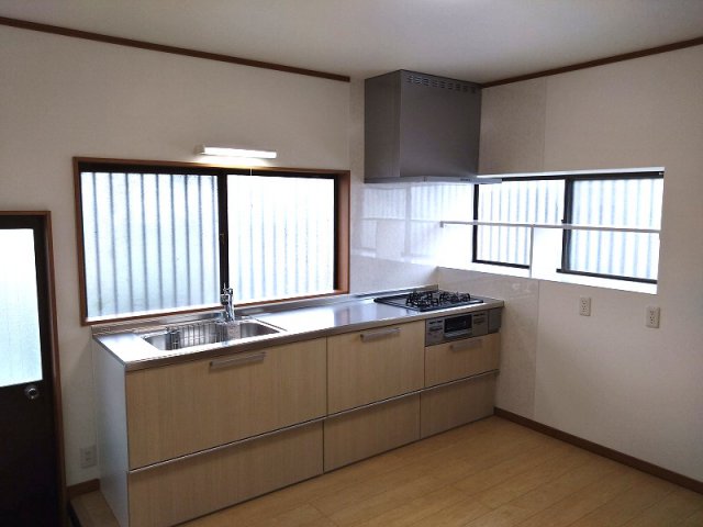 L型キッチンからI型キッチンへ変更することでダイニングキッチンのお部屋を広く使え、スッキリ見えるようになりました。