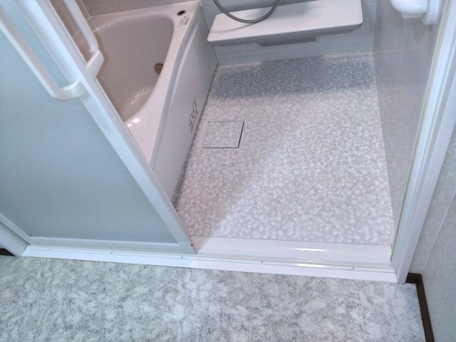 入口の段差も解消され、タイルに比べてお手入れはぐっと楽になると思います。