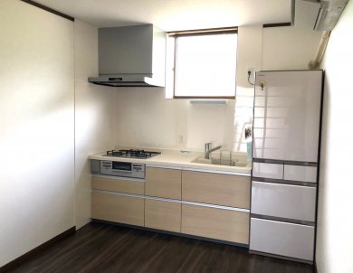 キッチンは対面から壁付けにすることで、広々としたダイニングに劇的チェンジしました!冷蔵庫もシンクの隣に横並びに置くことで食材が出し入れしやすく、作業がスムーズになりました。