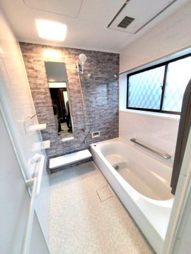 安全(バリアフリー)に使用できるように、手すりの設置や、脱衣室と浴室の床をフラット(段差解消)にさせていただきました。