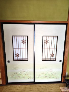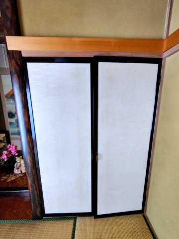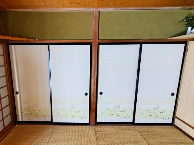 和室の押入と出入口のフスマの貼替えをさせていただきました。
