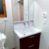 洗面化粧台の交換の他に、床はクッションフロアの貼替え、壁はクロスの貼替えをさせていただきました。