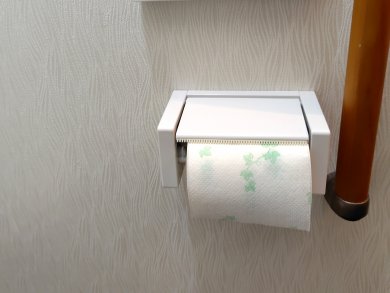 さらに、紙巻き器(ペーパーホルダー)の交換、床と壁はクロスの貼り替えを行いました。
