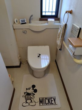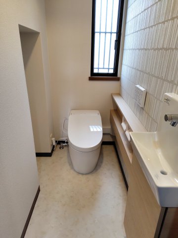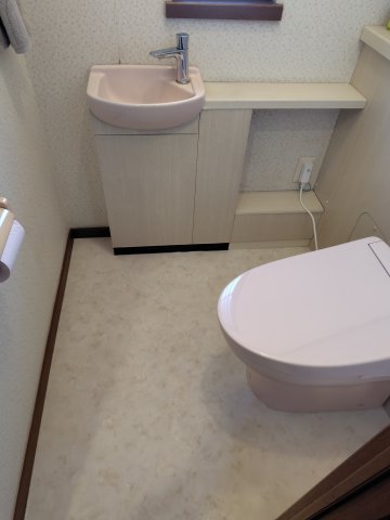 皆戸中建築のアドバイザー 増田が現場担当し、1階のトイレはGGA手洗い器付きワンデーリモデル、2階のトイレは便座交換と手洗い器の水栓のみ交換させていただきました。