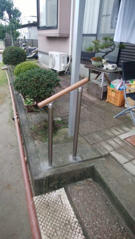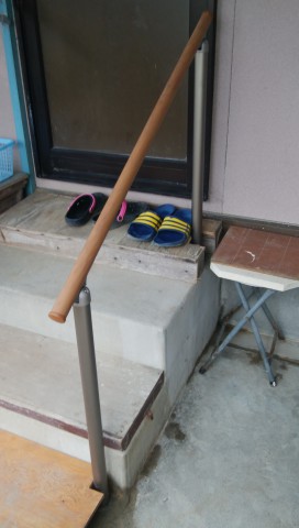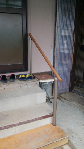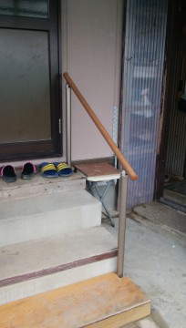 トイレリフォームと、介護保険使用にて、室内2ヶ所、勝手口からの屋外2ヶ所、手摺設置工事を行いました。