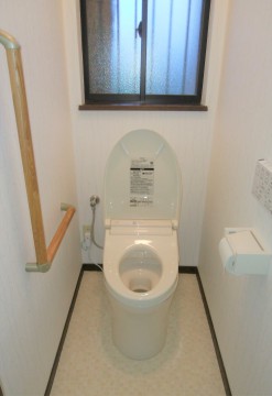 手すりも付けて使いやすいトイレリフォーム|浜松市浜北区