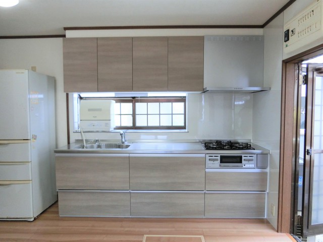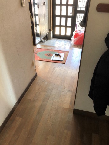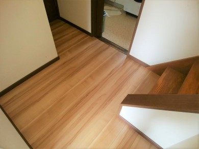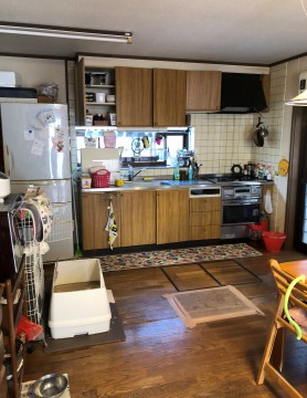 ダイニングキッチンと玄関ホールの床の貼替え、システムキッチンの交換工事をさせていただきました。
