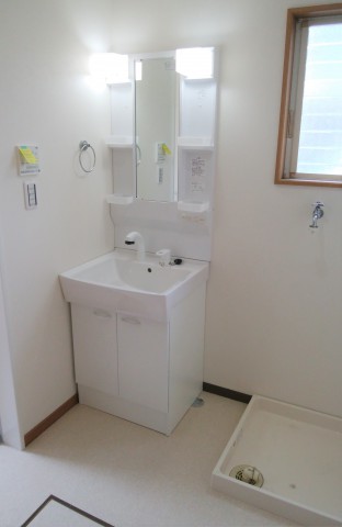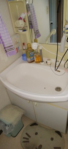洗面台交換と床と壁の張替工事をさせて頂きました。