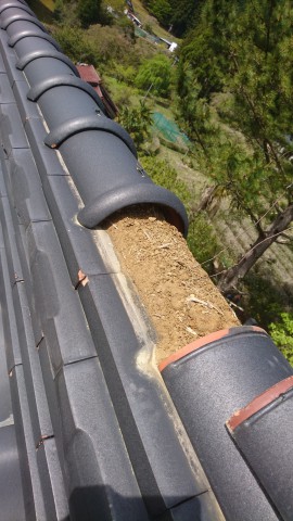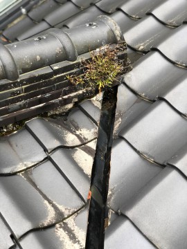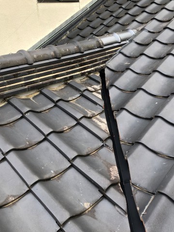 屋根瓦の調整、漆喰、谷樋修理の工事をさせて頂きました。