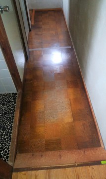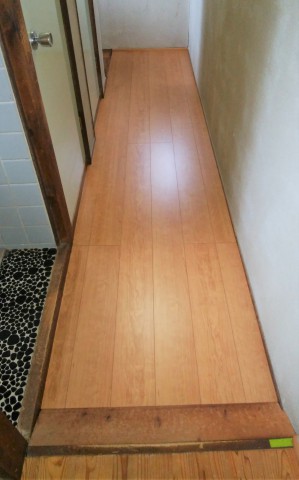 廊下の床の貼替と、トイレの便座交換をさせていただきました。