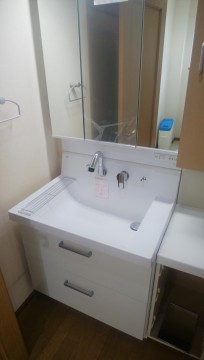 今回は洗面台交換をご希望で〈LIXIL〉洗面化粧台 ピアラW750 H750 3面鏡LED、取り付け工事をさせていただきました。