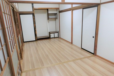皆戸中建築の担当アドバイザー皆戸中より、「畳からフローリング、天井断熱材入れクロス、土壁からクロス」をご提案させていただきました。