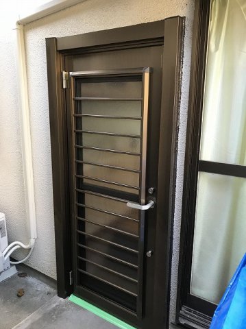 皆戸中建築の担当アドバイザー鈴木大作が、リクシルの網戸付き勝手口ドアにリフォームさせて頂きました。