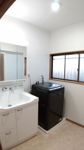洗面台や壁の白が映える、とても明るい洗面室となりました。