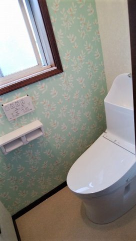 あわせて、紙巻き器の取付け、床・壁紙の貼替え等もさせて頂きました。