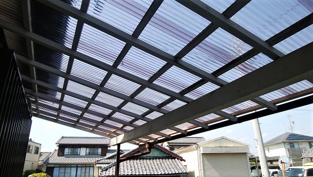 浜北区にお住まいのM様は、勝手口を出た場所に設置されているポリカ波板の貼替えをご希望でした。