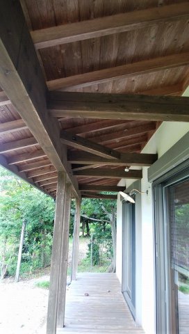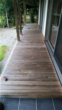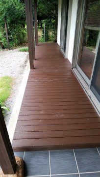 皆戸中建築の担当アドバイザー鈴木大作が、ウッドデッキやテラス、ベランダ、玄関引戸等の塗装工事をさせて頂きました。